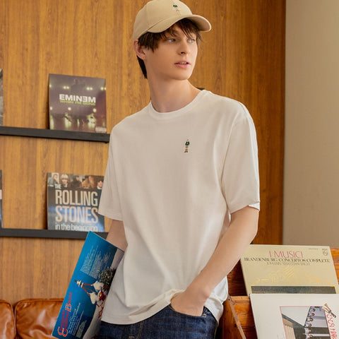 تي شيرت رجالي مريح من القطن الجيرسي بياقة دائرية وطبعة