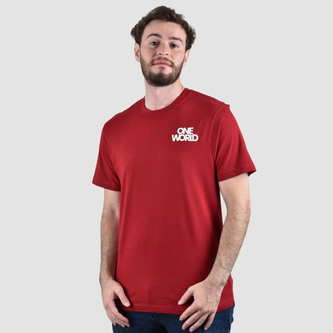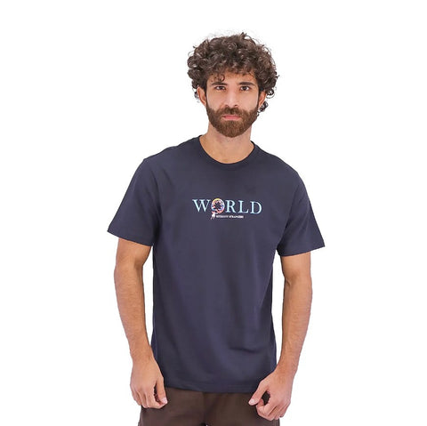 تي شيرت رجالي مطبوع عليه عبارة "عالم بلا غرباء" - قصة ضيقة، رقبة دائرية، قطن