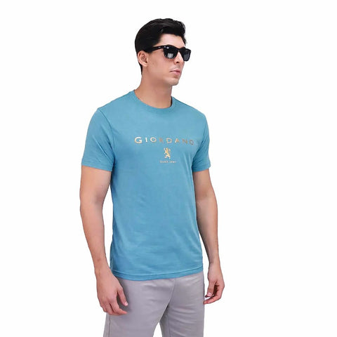 تي شيرت رجالي قطني بياقة دائرية مع طباعة مميزة