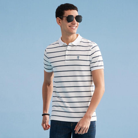 تي شيرت رجالي بقصّة Slim Fit من القطن بطبعة مميزة