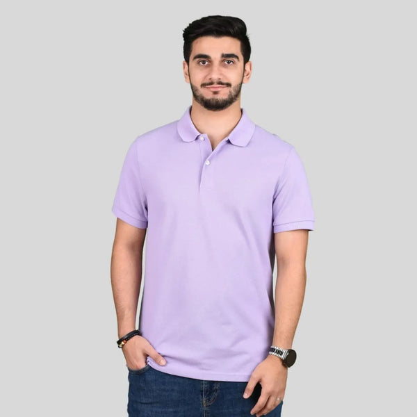 قميص بولو سادة للرجال من مزيج القطن المحبوك