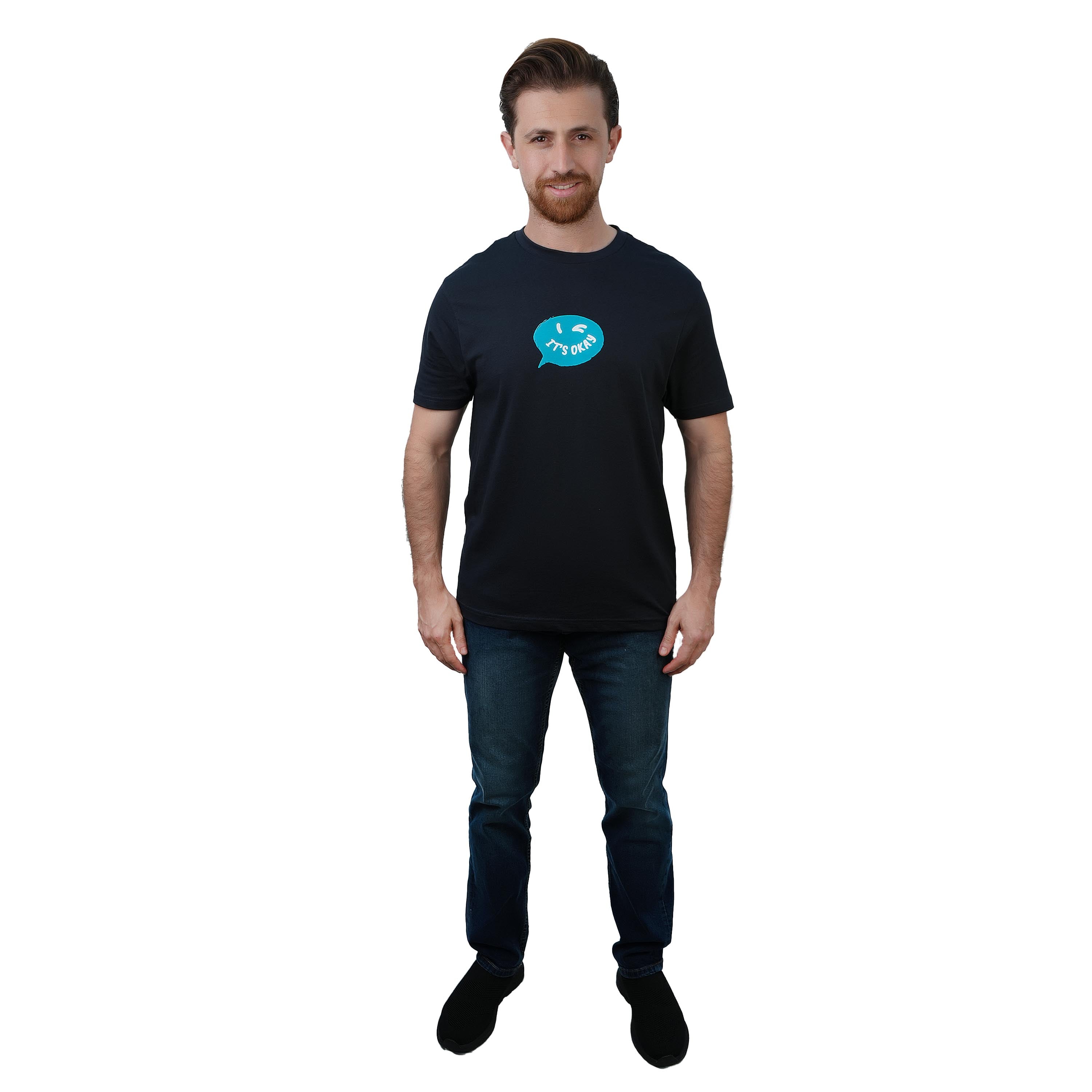 • تي شيرت رجالي من القطن بقصة ضيقة ومطبوع عليه رسالة