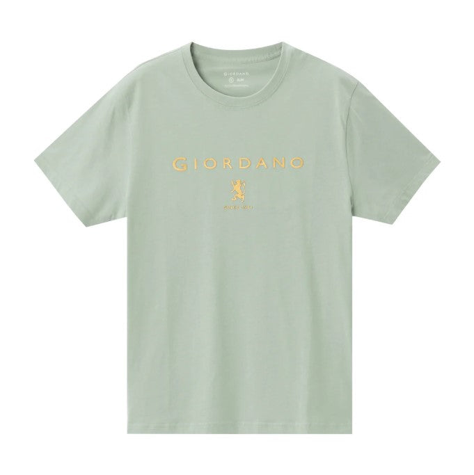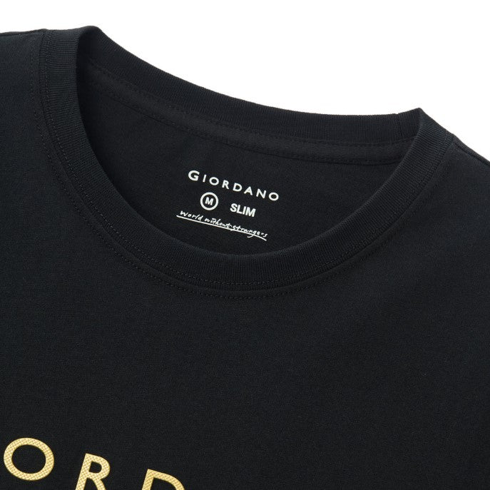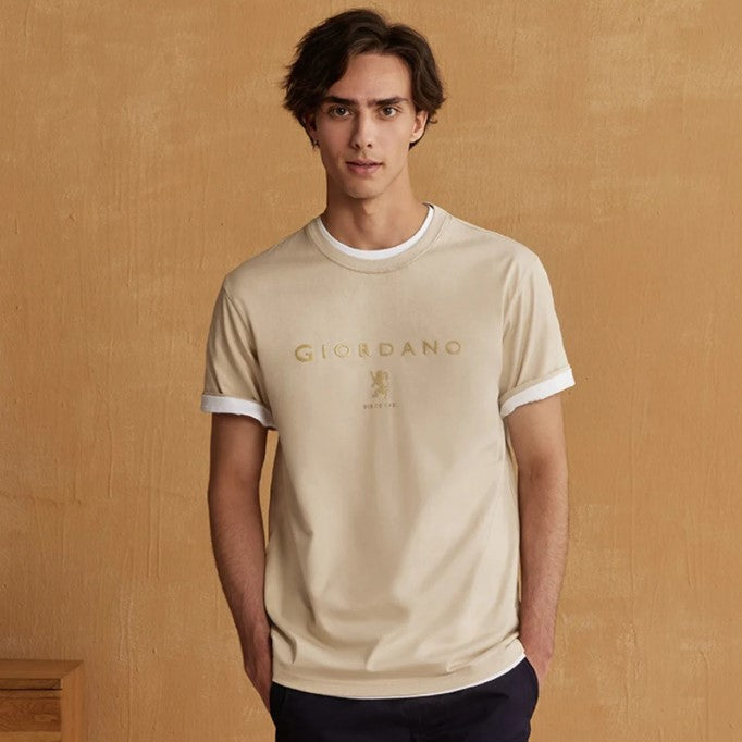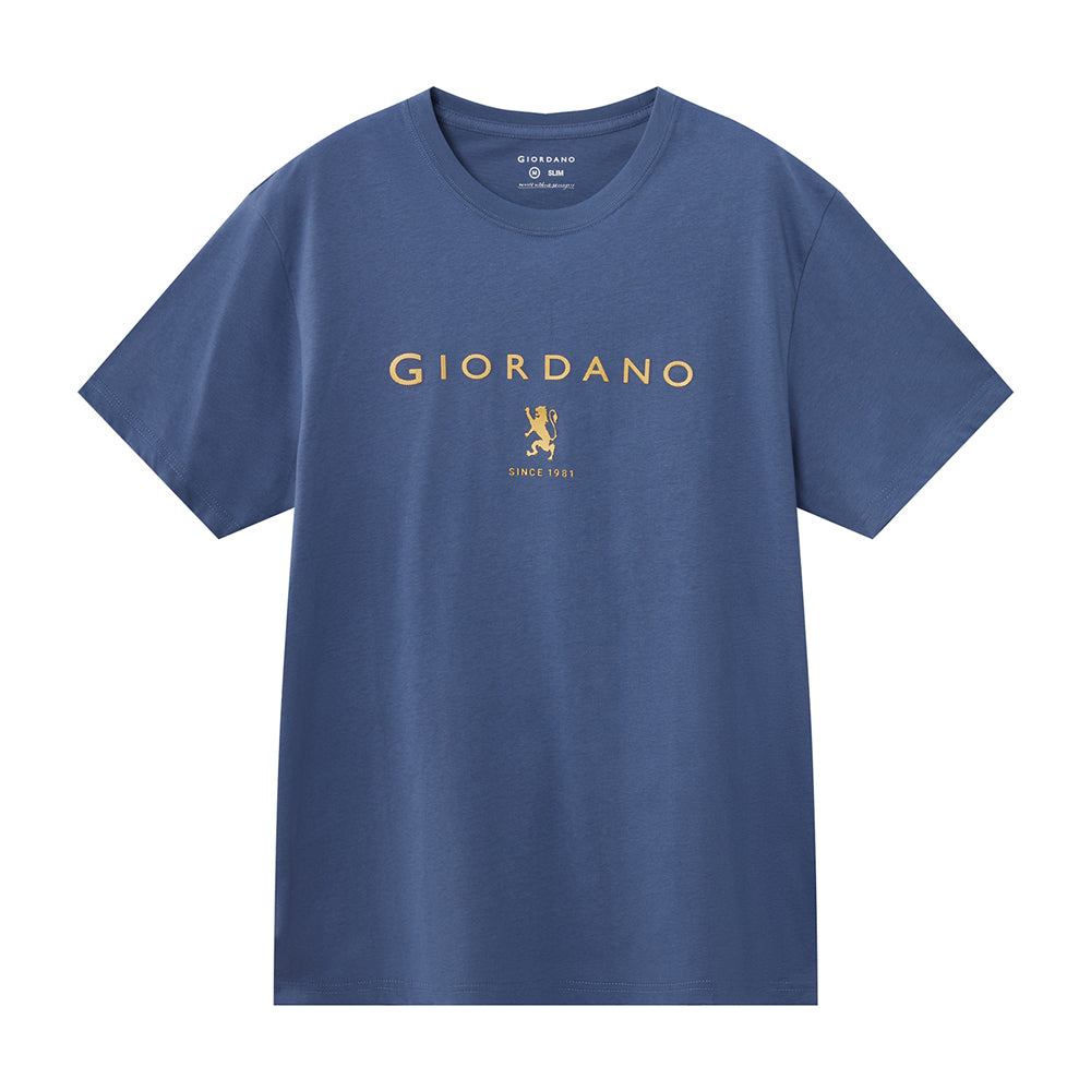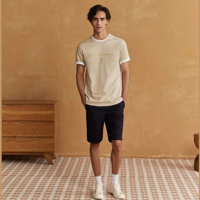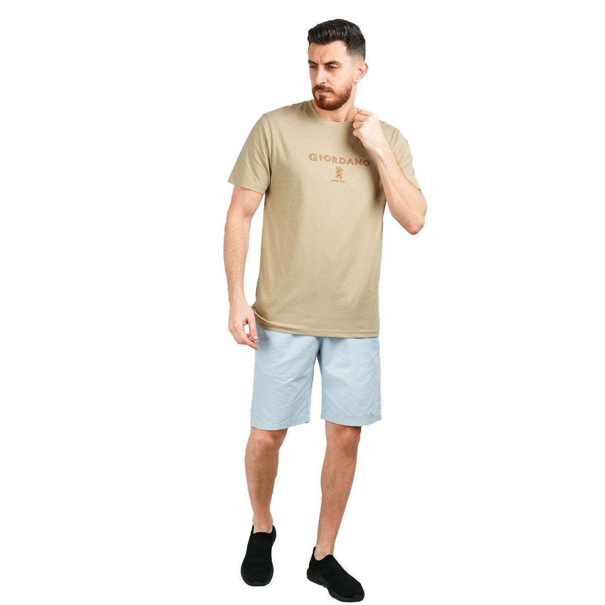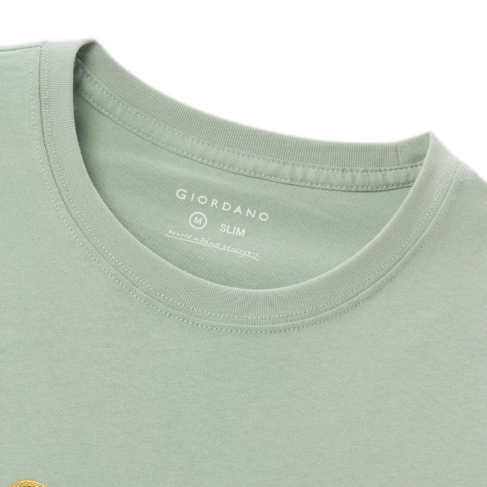 • تي شيرت قطني جيرسي بطبعة نحيفة وأكمام قصيرة ورقبة دائرية