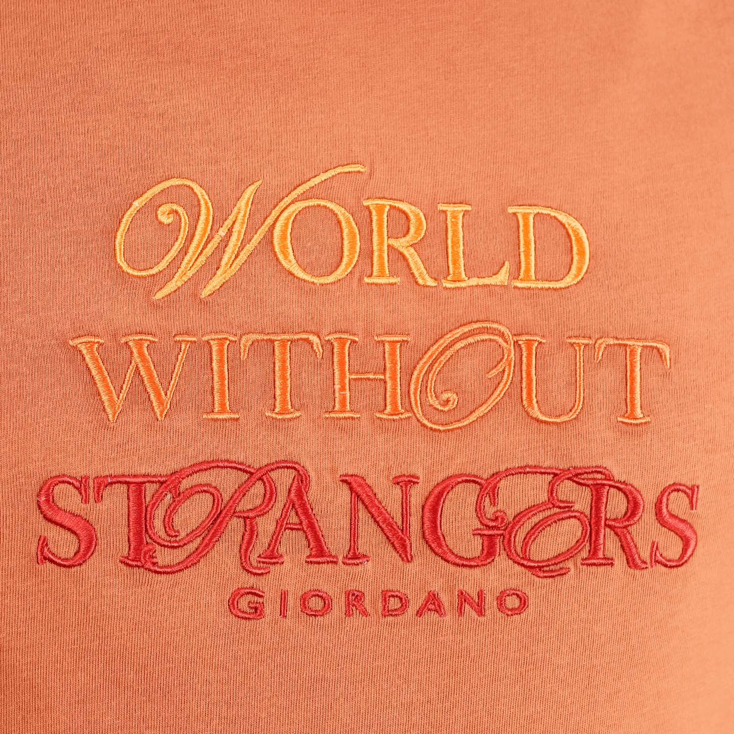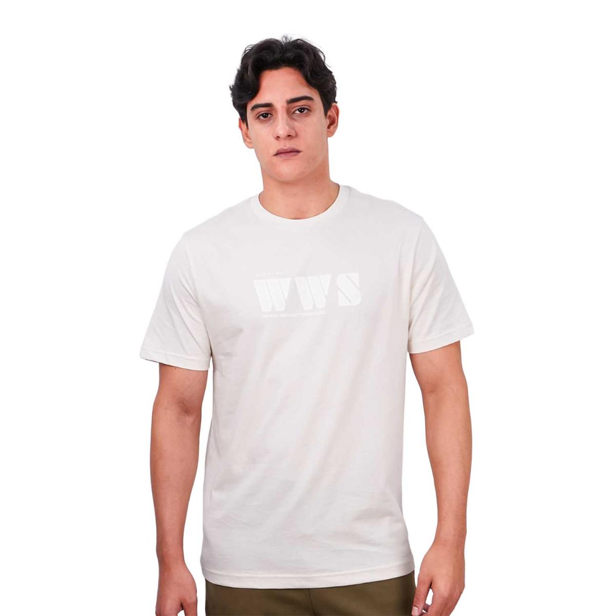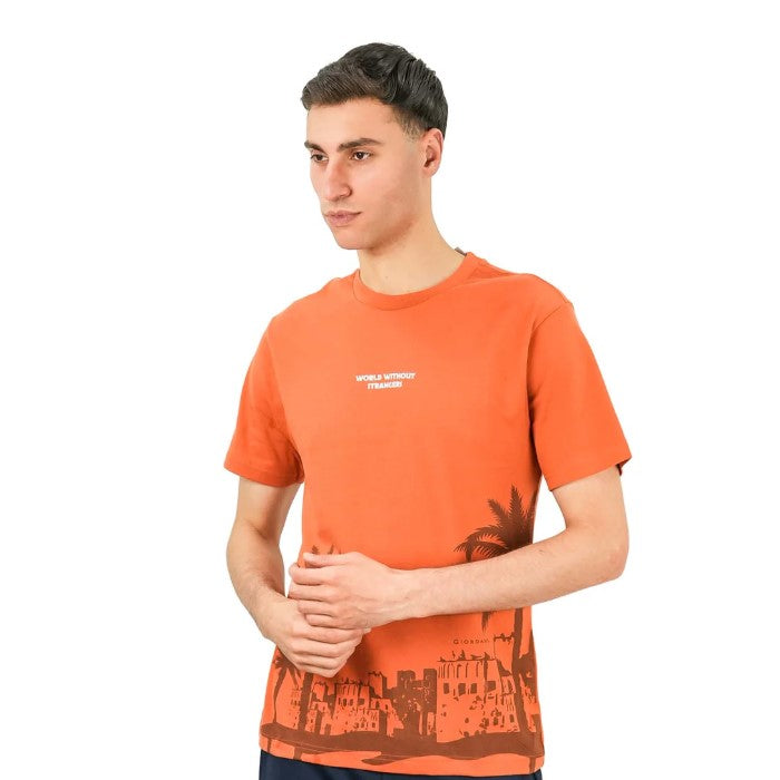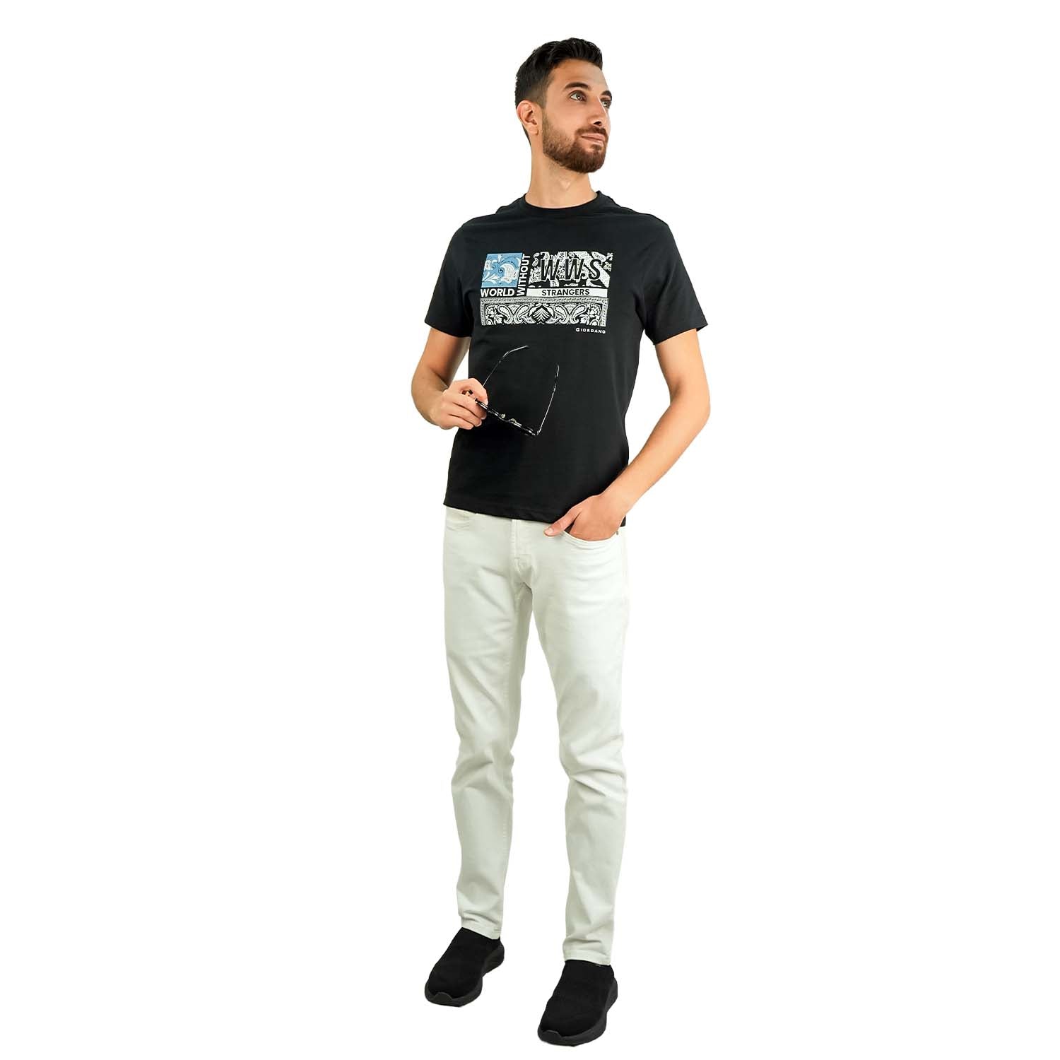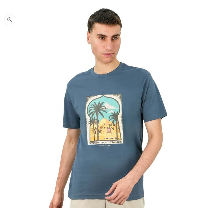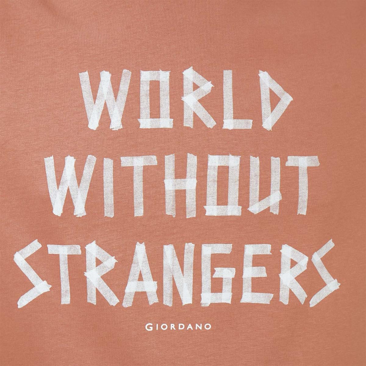 • تي شيرت رجالي مطبوع عليه عبارة "عالم بلا غرباء" - قصة ضيقة، رقبة دائرية، قطن