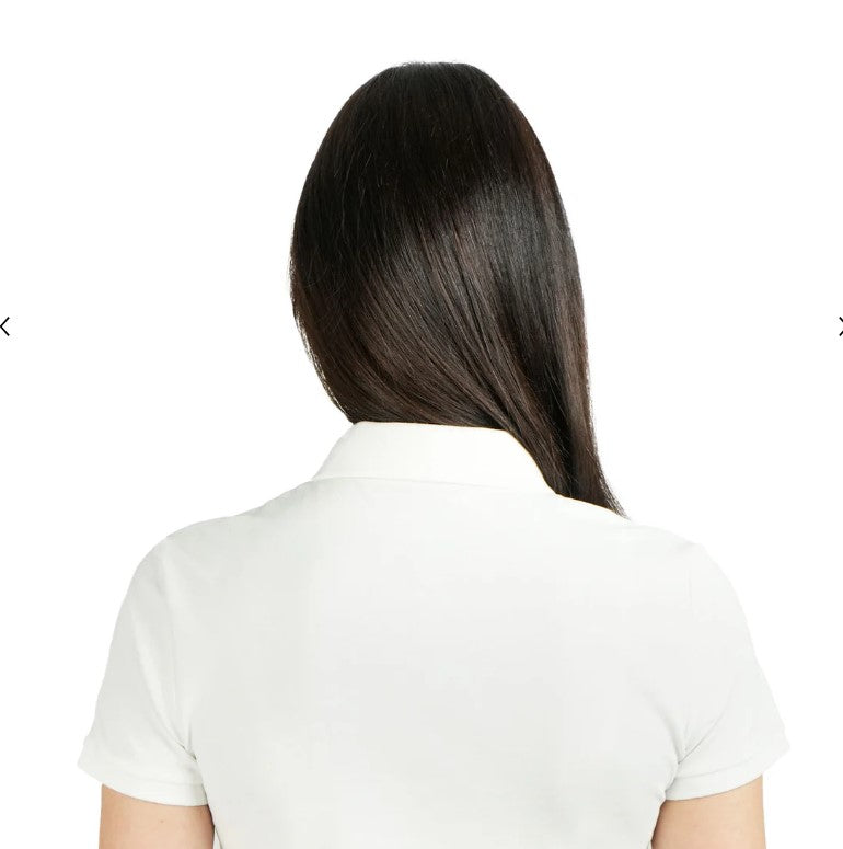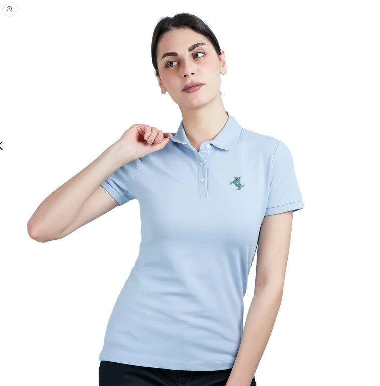 قميص بولو نسائي كلاسيكي وأنيق، بقصّة ضيقة وأكمام قصيرة، وتطريز نابليون صغير. مصنوع من قماش بيكيه قطني لايكرا مريح وجيد التهوية. مثالي للارتداء الكاجوال أو للمناسبات الرسمية.