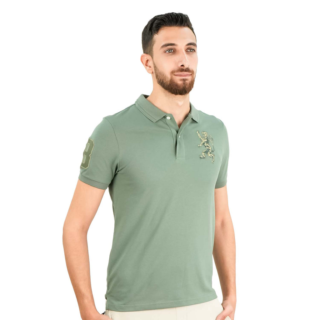 Men's 3D Lion Polo: Slim Fit, Bold Embroidery, Premium Pique