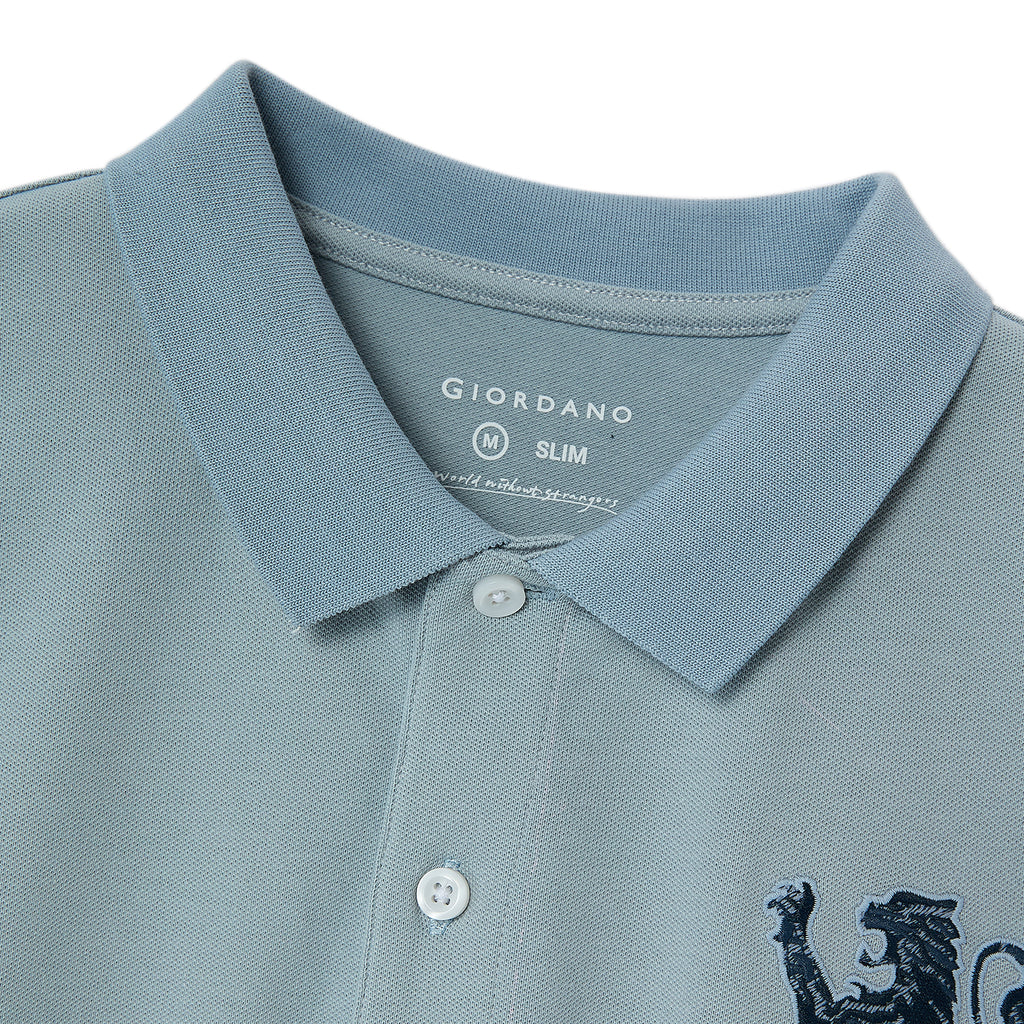 Make a statement with the Giordano Men's 3D Lion Polo. This slim-fit polo, crafted from a comfortable cotton-lycra pique blend, features a striking 3D embroidered lion design, a classic flat knit collar, and short sleeves.The bold embroidery adds a touch of modern flair to a timeless style, making it perfect for both casual and smart-casual occasions.