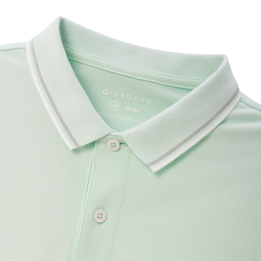 Experience the perfect blend of comfort and style with the Giordano Men's Slim Fit Pique Polo. Crafted from a premium cotton-lycra pique blend, this polo features a flattering slim fit, a classic flat knit collar, and short sleeves. The resin and softie finish provides an exceptionally soft and smooth feel, while the solid color design offers versatile styling options.