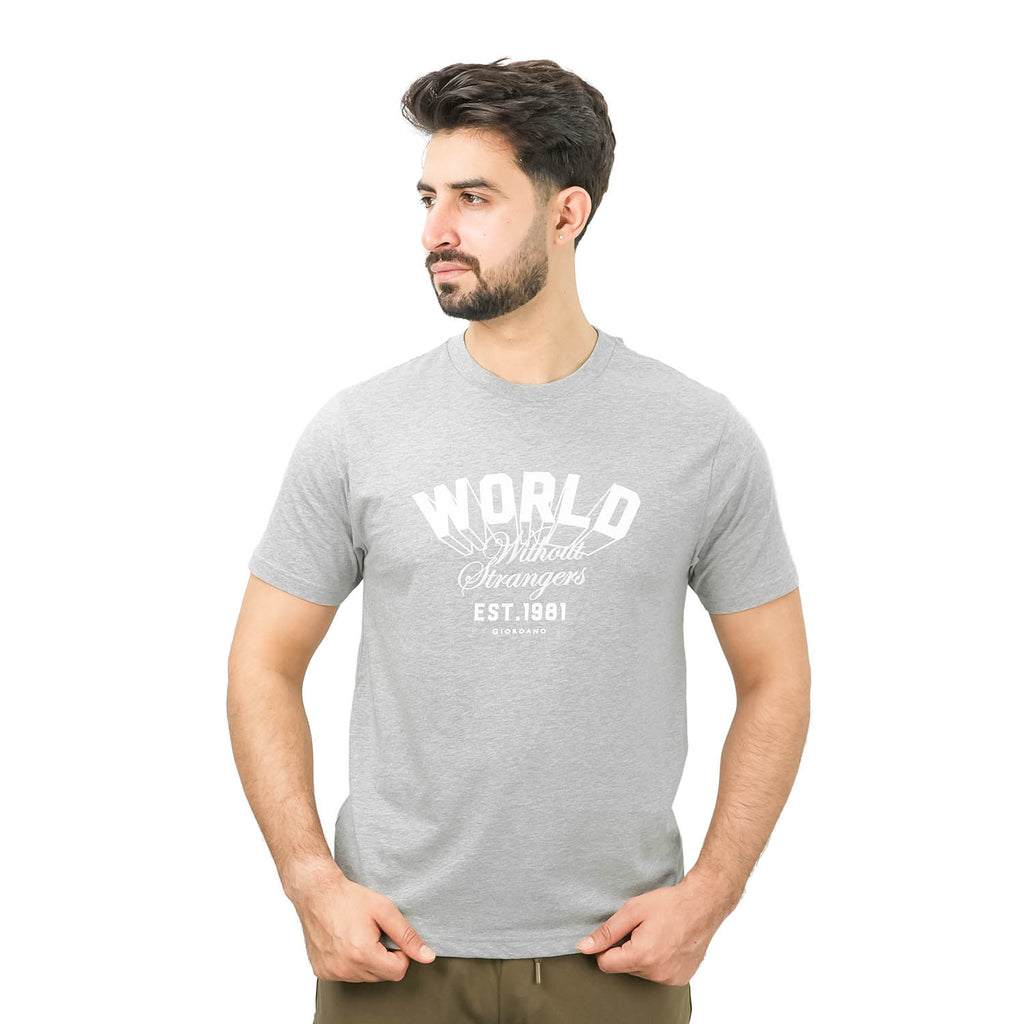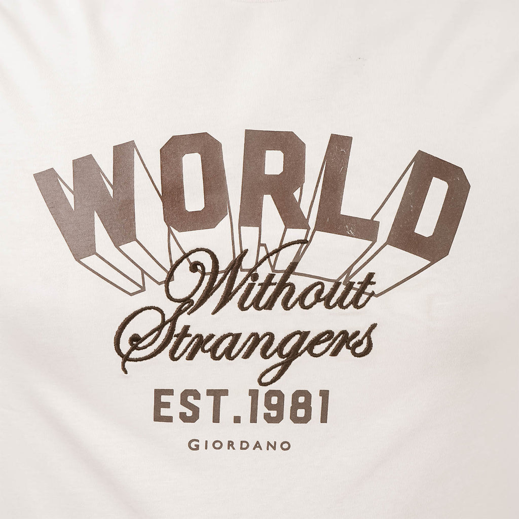Men's World Without Strangers Print Tee - Slim Fit, Crew Neck, Cotton