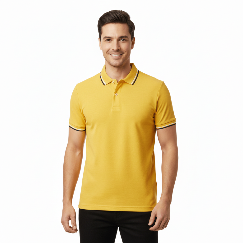 Upgrade your smart-casual essentials with this men’s slim-fit polo, crafted from a premium cotton-lycra pique blend for breathable comfort and flexible movement. Designed with a crisp flat knit collar featuring contrast tipping, this polo delivers a polished yet modern look. The soft-touch finish enhances comfort, making it ideal for workdays, weekend wear, or everyday styling. Lightweight, durable, and refined, this piece elevates any outfit with clean and contemporary detailing.