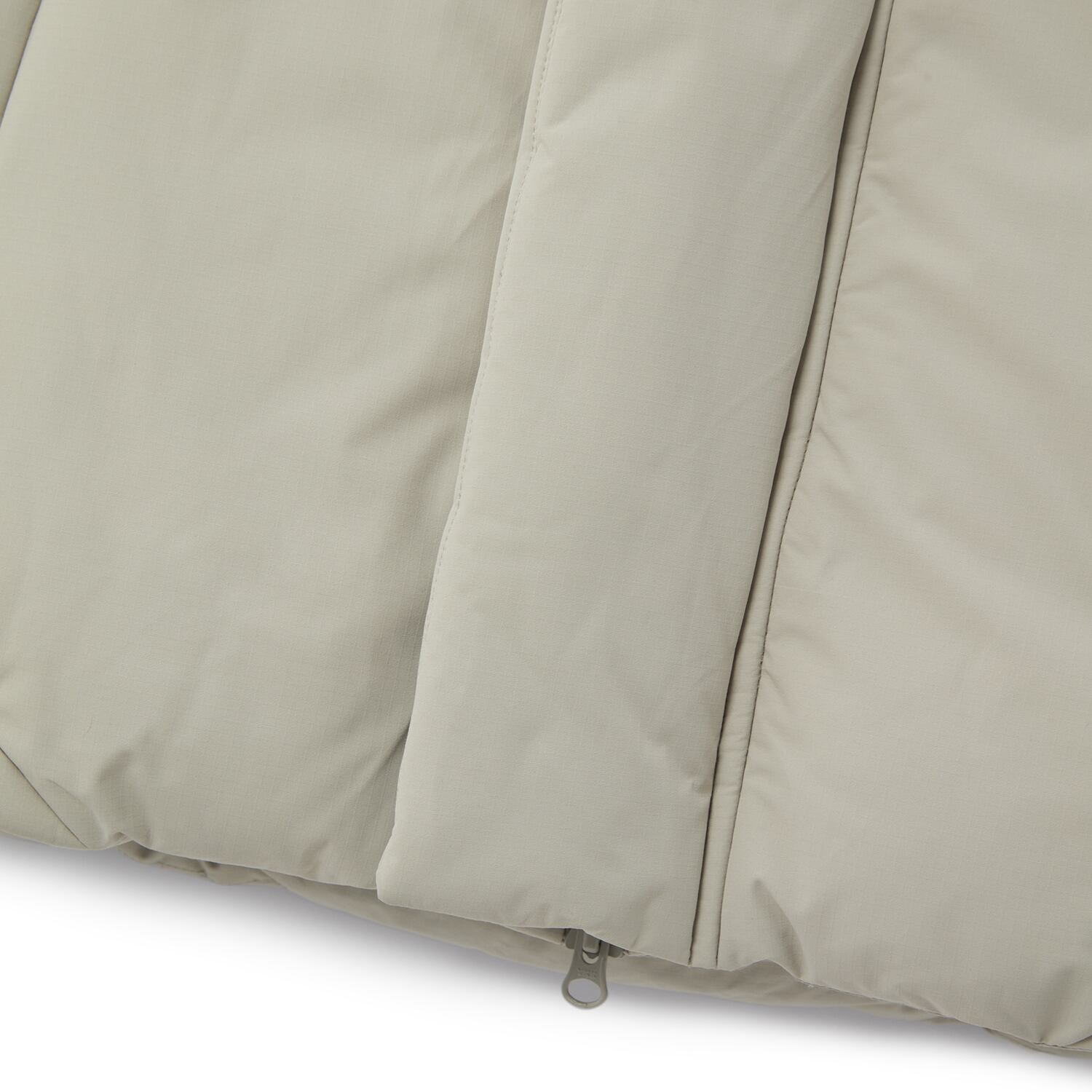 The high-neck padded collar offers added protection against the cold, while the full front zipper closure ensures easy wear and a secure fit. Its sleek, minimal design is complemented by side zip pockets, perfect for safely storing essentials.